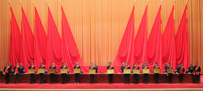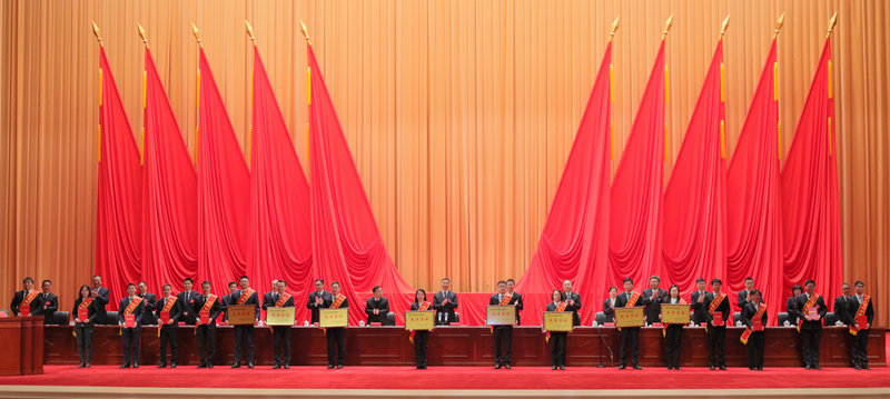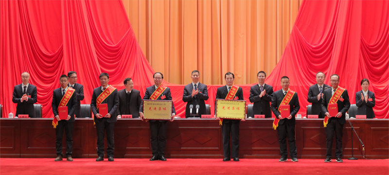 集團公司領(lǐng)導向受表彰的“揭榜攻堅”先進團隊代表,年度工作、安全生產(chǎn)、科技創(chuàng)新、綜治信訪的先進集體和先進個人代表頒獎