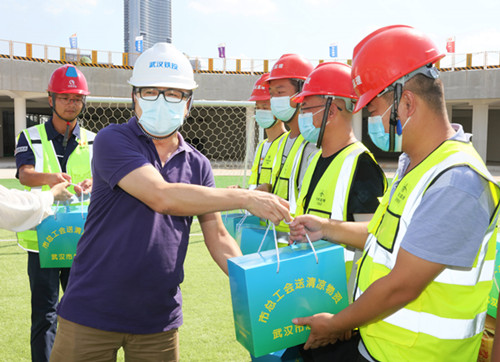 8月26日下午,武漢市總工會副主席李兵帶隊,在集團公司工會主席江強生的陪同下,來到集團公司所屬鐵投公司月亮灣城市陽臺項目工地,慰問項目建設一線職工,為勞動競賽加油鼓勁。市總工會經(jīng)濟部部長吳志武等參加活動。