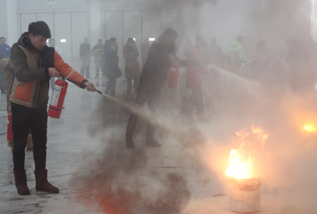演練由3個部分組成,首先是模擬展館出現(xiàn)火情后,消防廣播響起,館內(nèi)相關(guān)人員從內(nèi)環(huán)疏散,經(jīng)營公司安全部現(xiàn)場值班人員使用消防水袋展開滅火工作;隨后展館消防站、漢陽區(qū)消防大隊(duì)的消防官兵趕到火災(zāi)現(xiàn)場,利用消防車上的消防水袋和水源進(jìn)行滅火,并轉(zhuǎn)移現(xiàn)場受傷群眾;最后由展館經(jīng)營公司抽派部分員工進(jìn)行了干粉滅火器的現(xiàn)場實(shí)際滅火操作。
