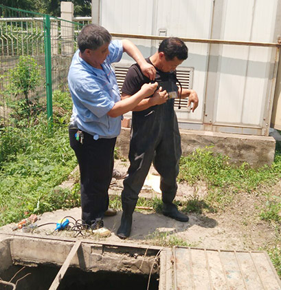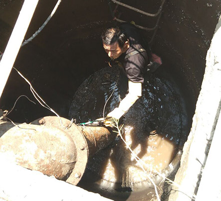 7月9日,當(dāng)現(xiàn)場(chǎng)達(dá)到維修條件,中心副主任周全親自在現(xiàn)場(chǎng)指揮,組織天興洲大橋管理所對(duì)抽水泵電動(dòng)裝置進(jìn)行了維修。35度的高溫濕熱天氣,考驗(yàn)著管護(hù)隊(duì)員們的忍耐極限,為了那一份職業(yè)擔(dān)當(dāng),管護(hù)隊(duì)員們?nèi)碇裰氐南滤?,下井?duì)故障的浮球閥進(jìn)行了更換,處置了電路故障,在經(jīng)多次設(shè)備的調(diào)試下,南湖村泵站于當(dāng)日12時(shí)恢復(fù)了自動(dòng)抽排,故障隱患解除。