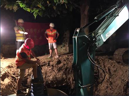 7月25日,水務(wù)集團(tuán)總經(jīng)理黃思了解情況后,趕到工地作出要求:一是立即鋪設(shè)一條DN600的臨時供水管道,保證正常的供水;二是將漏水的DN800管道斷開,對管道上面的違章用房下達(dá)整改通知書,徹底消除對兩條鐵路的安全隱患。7月26日,江城驕陽似火,氣溫超過37℃,漢口維修工程處施工人員進(jìn)駐現(xiàn)場,揮汗如雨、開始鋪設(shè)臨時供水管道。此次施工時間緊張,安裝管道施工難度較大,該處位于堤路邊鐵路橋下,除一根直線管道外,還需安裝一處爬梯管道。因日常車輛行駛較多,為避免影響正常的交通秩序,按照交管局的要求,漢口維修工程處每天安排人員24小時值守,日夜施工。白天烈日烘烤,晚上連續(xù)施工,人員三班輪崗,終于以最快的速度完成臨時管道的安裝。至7月29日,130米直徑600毫米管道和150米直徑200毫米管道安裝完畢。經(jīng)過連接各個配水管點(diǎn)、沖洗、消毒,到8月1日上午10時,漏水管道廢除,臨時管道啟用,危及高鐵安全的漏水問題得以徹底解決。