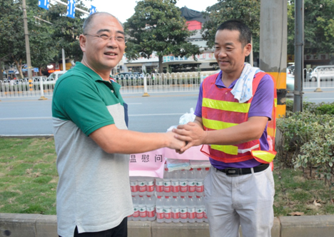 7月27日,停車場(chǎng)公司領(lǐng)導(dǎo)班子分別帶隊(duì)前往梨園小路(徐東大道―楊園南路)、解放大道(航空路―寶豐一路)等5個(gè)道路停車泊位施劃、地磁安裝施工現(xiàn)場(chǎng)及智能停車系統(tǒng)開發(fā)現(xiàn)場(chǎng),看望慰問高溫酷暑里奮戰(zhàn)在建設(shè)運(yùn)營(yíng)一線的工作人員,并送去了防暑藥品、毛巾、礦泉水等防暑降溫用品,在炎炎夏日中送去了公司的一份清涼和關(guān)懷。
