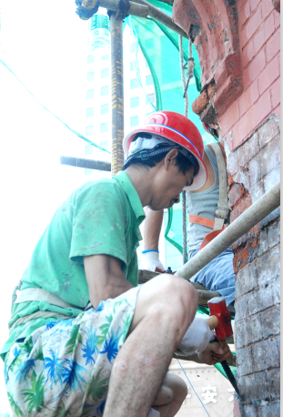 目前,負(fù)責(zé)漢口水塔立面保養(yǎng)維護(hù)工程施工的是曾被市領(lǐng)導(dǎo)稱為武漢市立面整治工程“鐵軍”的武漢城投房產(chǎn)集團(tuán)天時(shí)建筑工程公司。該公司現(xiàn)場(chǎng)負(fù)責(zé)人介紹:整個(gè)工程工期40天,7月30日開始搭設(shè)外腳手架,8月5日開始正式施工,9月15日前將完成“水塔文物建筑本體”的立面原狀恢復(fù)及屋面治漏等工作,對(duì)其損壞的立面清水磚、毛石砌塊、原有木門窗等進(jìn)行全面修復(fù),還原其百年前建筑風(fēng)貌。盡管工程時(shí)間緊、要求高,但該公司表示將克服困難,科學(xué)調(diào)度,精細(xì)施工,還原經(jīng)典,為推進(jìn)中山大道綜合保護(hù)與改造工程,重現(xiàn)老漢口歷史風(fēng)貌再作貢獻(xiàn)。