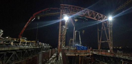 11月9日凌晨,經(jīng)過(guò)47小時(shí)日夜連續(xù)奮戰(zhàn),澆筑混凝土4881方,楊泗港長(zhǎng)江公路雙層大橋2#主塔沉井完成了第四次封底施工,至此,2#沉井完成全部封底施工并坐穩(wěn)根基,即將轉(zhuǎn)入墩臺(tái)施工。
