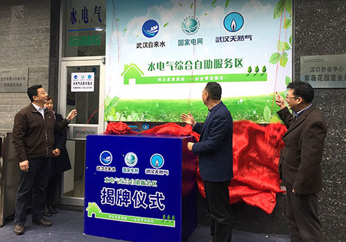 武漢市水、電、氣三家公共服務(wù)企業(yè)首次實(shí)現(xiàn)營業(yè)廳資源共享,開辟了“水電氣綜合自助服務(wù)區(qū)”,方便市民“一站式”辦理水電氣繳費(fèi)、圈存、查詢等業(yè)務(wù)。3月24日上午9點(diǎn)半,水電氣聯(lián)合召開發(fā)布會(huì),三家企業(yè)領(lǐng)導(dǎo)共同揭牌。