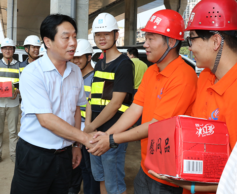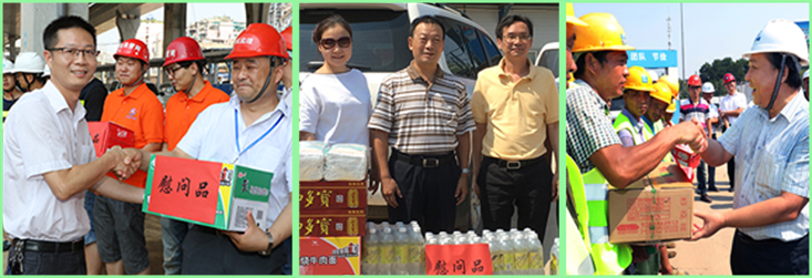 連日來,氣溫節(jié)節(jié)攀升,酷暑考驗著堅守在工作一線的廣大干部職工,更牽動著集團(tuán)公司領(lǐng)導(dǎo)們的心。7月28、29日,公司董事長金國發(fā),總經(jīng)理李兵、黨委副書記吳文等領(lǐng)導(dǎo)班子成員分別帶隊赴三環(huán)線南段綜合改造工程、南湖出江通道工程和長江干堤諶家磯團(tuán)鳳灣段等27個現(xiàn)場,看望慰問了一線人員,送去了飲料、綠豆、白糖等防暑降溫物資。