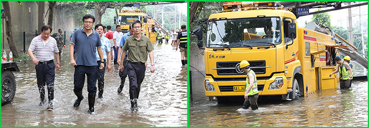 7月7日上午,在接到集團公司指令后,水務(wù)集團長江隧道公司立即將在武昌區(qū)域排漬接近尾聲的大型抽排設(shè)備“龍吸水”派往青山區(qū)21號公路漬水段。中午近13時到達現(xiàn)場后,集團公司總經(jīng)理李兵及總經(jīng)理助理陳春保立即向小分隊布置了搶排工作任務(wù),勉勵大家發(fā)揚不怕苦不怕累的硬骨頭精神,繼續(xù)奮戰(zhàn),為保衛(wèi)市民的財產(chǎn)安全和城市安全再作貢獻。橋建集團搶險小分隊與“龍吸水”小分隊進行了對接,一起踏水進行實地勘察后,安排10多名隊員各就各位。這些隊員在其他地點排漬,連早飯都沒顧得上吃,但是個個仍然精神抖擻,有條不紊地開始忙碌起來。