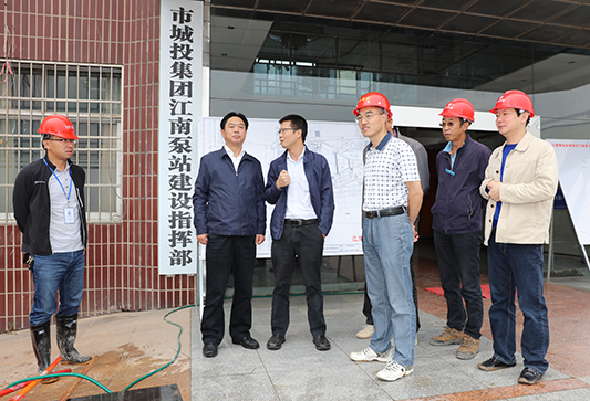 10月1日上午,集團(tuán)公司董事長(zhǎng)金國(guó)發(fā)、總經(jīng)理李兵分別前往雄楚大街BRT、楊泗港大橋二號(hào)墩、江南泵站及南湖出江通道、江漢四橋、四新泵站、濱江大道等工程現(xiàn)場(chǎng),檢查調(diào)度項(xiàng)目建設(shè)。